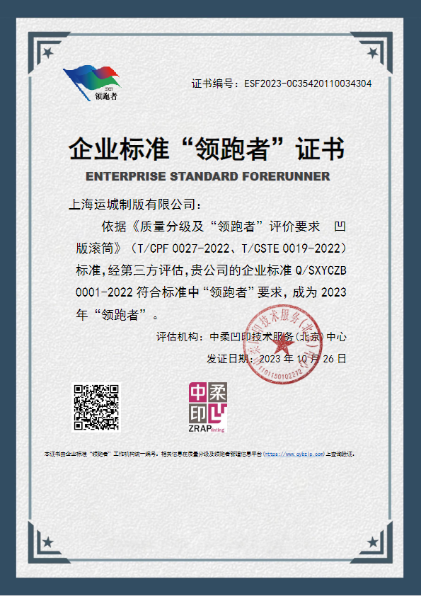 近日,2023年度全国企业标准“领跑者”名单在国家企业标准领跑者管理信息平台上正式发布,山西运城制版集团企业标准Q/SXYCZB 0001-2022和上运制版 Q/SXYCZB 0001-2022入围2023年企业标准“领跑者”。